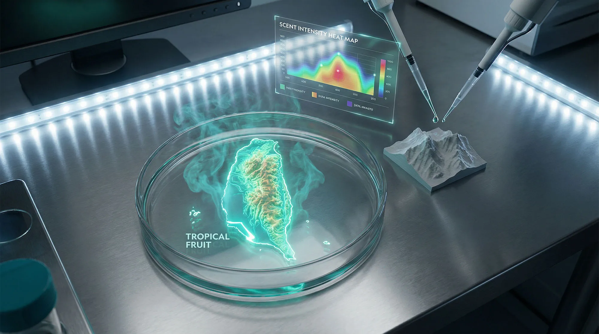 以氣味將科技視覺與台灣土地記憶掛鉤,創造科技與自然的感官反差。